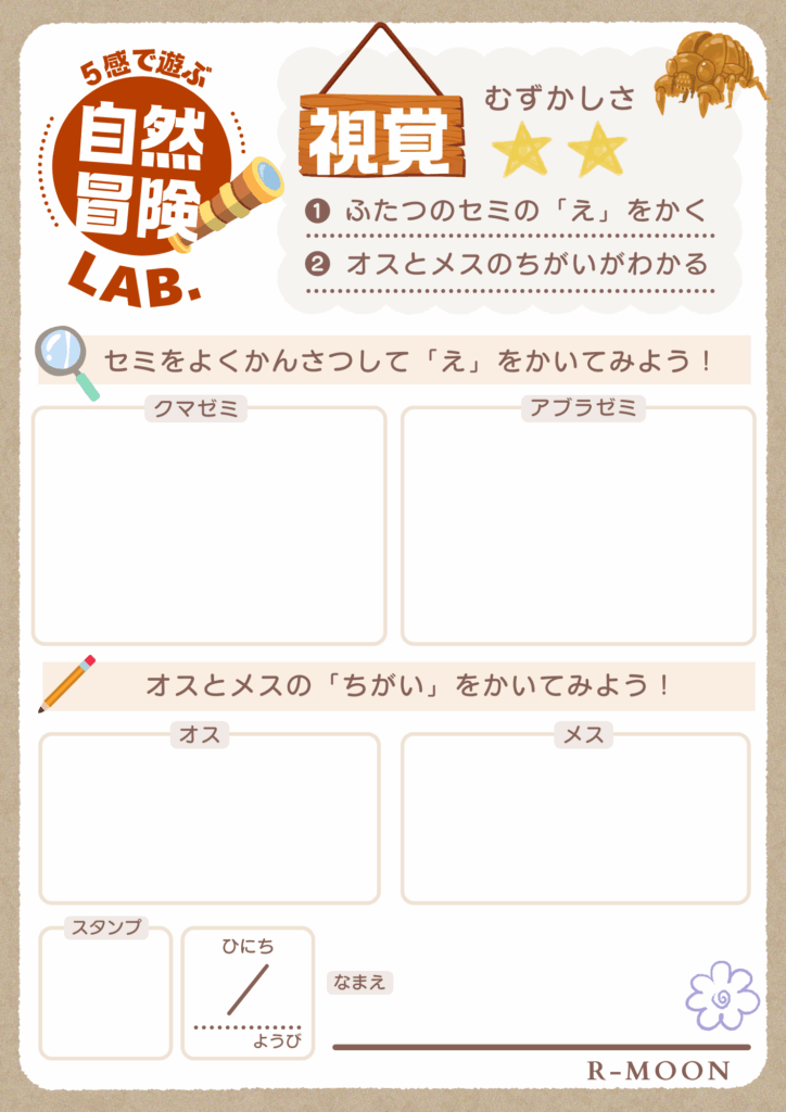 冒険ノートに記載された『視覚』『聴覚』『嗅覚』『触覚』『味覚』それぞれのテーマに応じた自然や生き物
