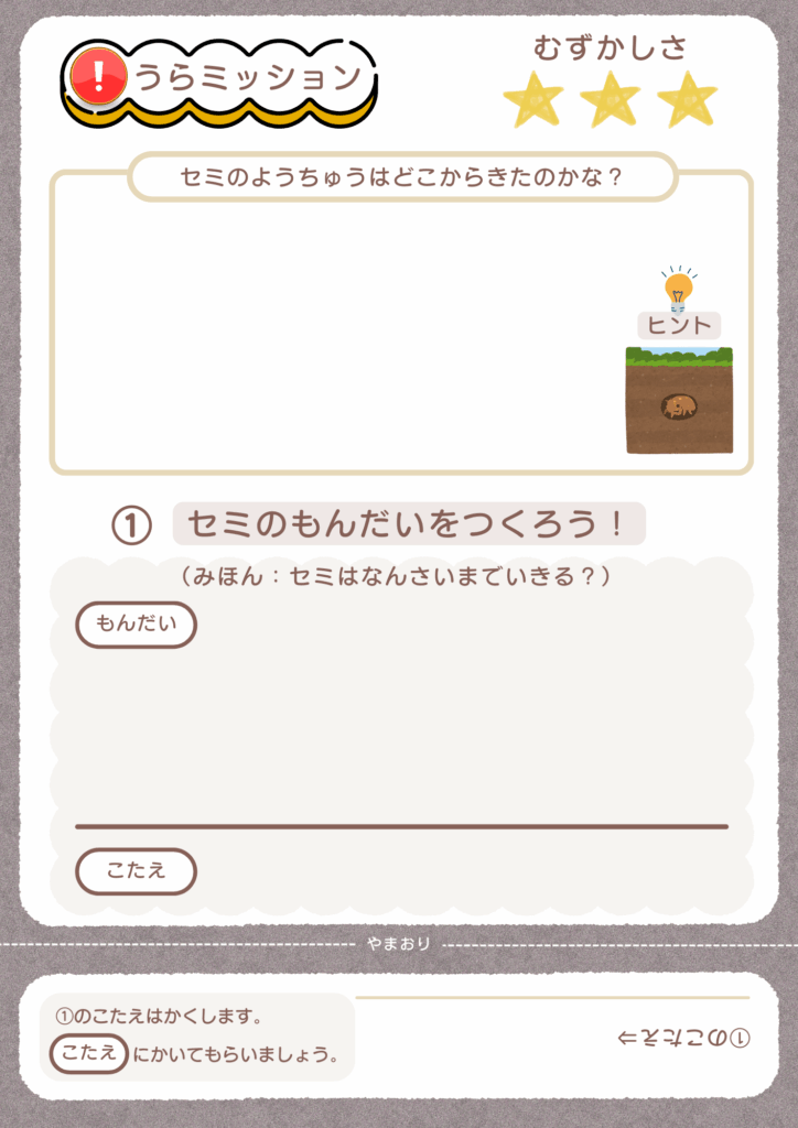 観察ミッションをクリアしていく、5感を使って生物多様性を楽しく学べる子供向け型のイベントです。